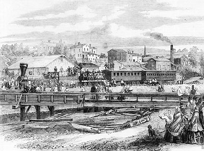Arrival of the first train of the Atlantic and Great Western Railroad (click to see full image)